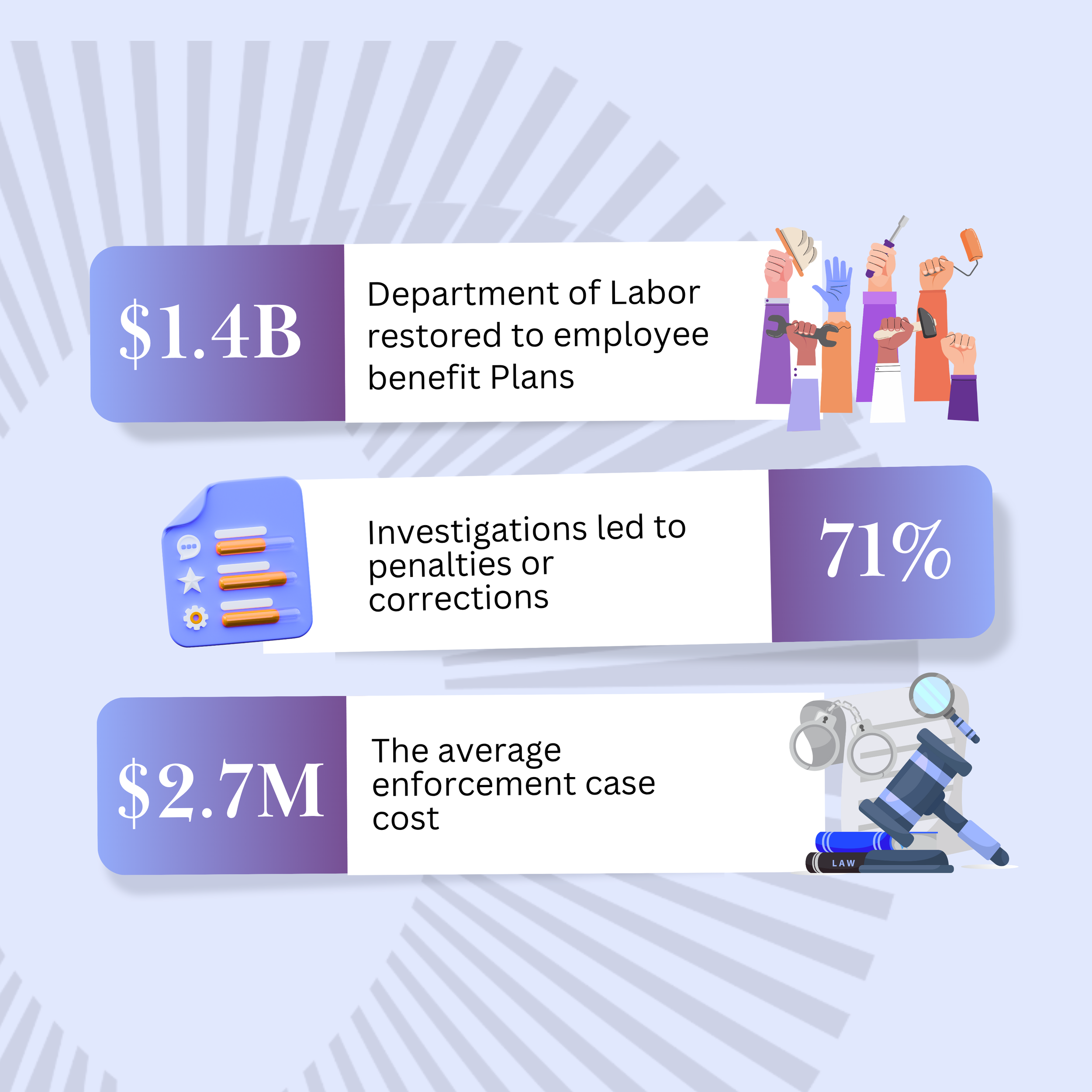 The DOL restored more than $1.4 billion to plans in 2024, with 71% of investigations leading to corrective action (averaging $2.7 million per employer). Noncompliance risks loss of funding, fines, and personal fiduciary liability, but smart leaders see a chance to turn compliance into a strength.